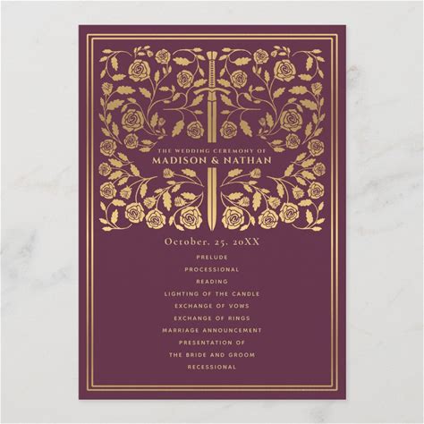 Mauve Royal Medieval Sword Wedding Program