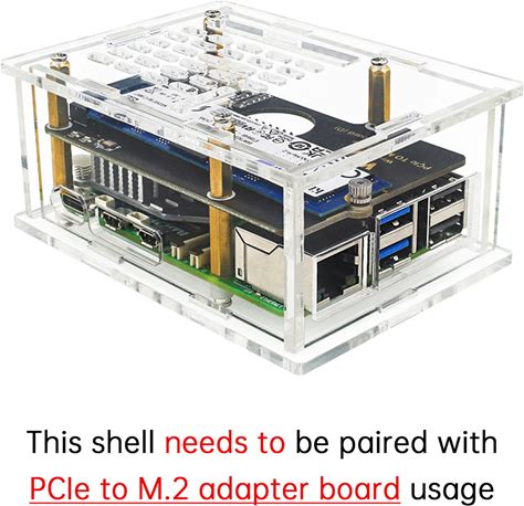 Raspberry Pi 5 PCI-E To M.2 Adapter Board Acrylic Box Adapter Case With Radiator Option1