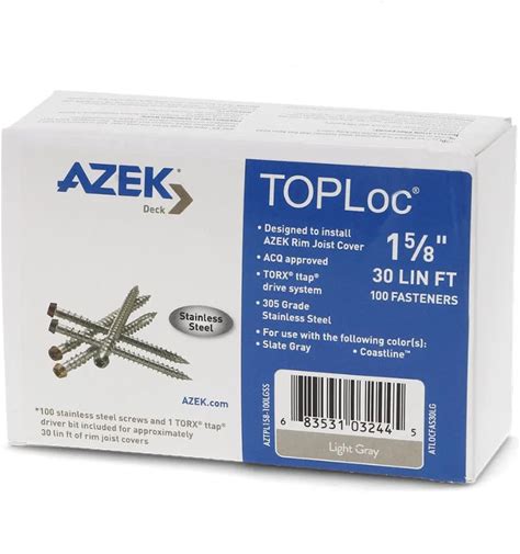 Timbertech Toploc AZEK Fascia Light Gray Fasteners - Box Of 100 For 30 Linear Feet