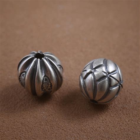 Sterling Silver Fish Pattern Beads, Round Bead, Corrugated Bead, Weave Pattern Bead, Flower Bead, Pumpkin Bead, Flat Bead, Bracelet Spacer