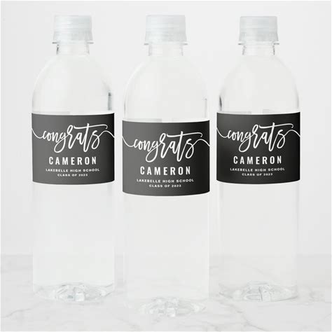 Black And White Congrats Calligraphy Graduation Water Bottle Label