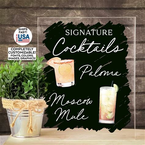 Bar Menu Editable Template Customizable Drinks Menu Signature Drinks Sign Cocktail Bar Acrylic Wedding Sign Bar Menu Sign Bar Cart Sign
