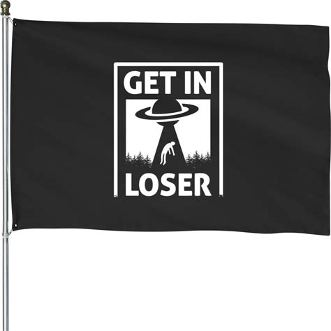 Get In Loser Alien Abduction Flag - Double-Sided UFO Conspiracy House Flag For Outdoor Decor - 23" X 35" Black Polyester Banner