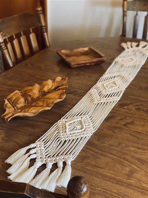 Cotton Table Runner With Macramé Design
