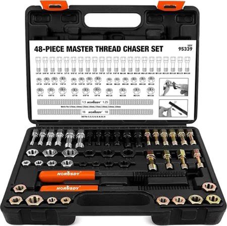 Horusdy 48-Piece Thread Chaser Set, UNF UNC And Metric Thread Chaser Kit,Rethreading Kit, Thread Repair Kit