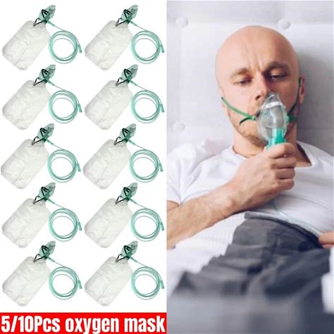 5-10Pcs Disposable Adult High Concentration Oxygen Face Mask With Tubing Non-Rebreather Oxygen Mask