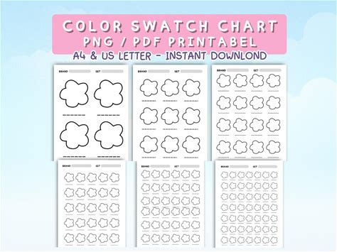 Color Swatch Chart Printable Blank Color Chart Color Swatch Template Page Color Swatch Colour Swatch Sheet Template Instant Download PDF PNG