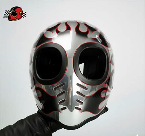 Retro Alien Helmet Chrome With Black Red Flame Full Face Handmade Motorcycle Gear For Chopper And Bobber