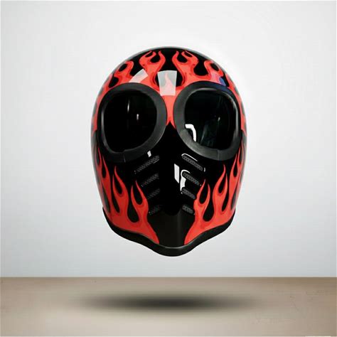 New! Custom Helmet Alien Retro Flame, Full Face Vintage Style Helmet, Motorcycle Cafe Bobber