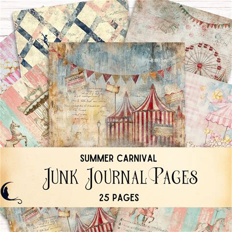 Carnival Junk Journal Pages, Printable Vintage Circus Ephemera, Shabby Chic Summer Fun Fair Scrapbooking Backgrounds, DIY Craft Supplies