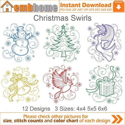Christmas Swirls Machine Embroidery Designs Pack Instant Download 4X4 5X5 6X6 Hoop 12 Designs SHE2810