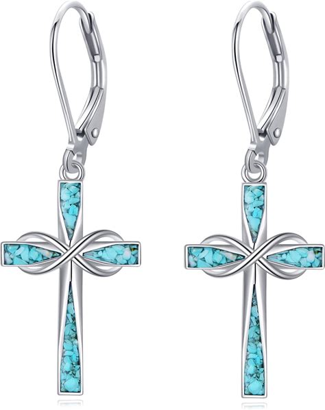 ONEFINITY Cross Earrings For Women 925 Sterling Silver Turquoise Dangle Earrings Jewelry Gifts