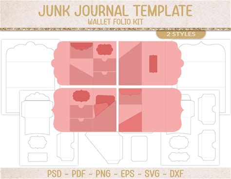 Tri Fold Folio Kit, Junk Journal Templates, Fold-Over Card Insert, SVG Cutting File, Printable Paper Craft Supply, Scrapbooking, PSD (JL115)